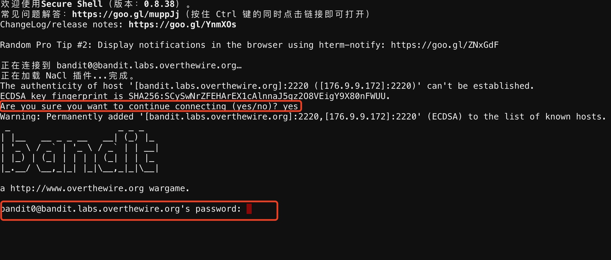 输入页面中告诉我们的密码:bandit0